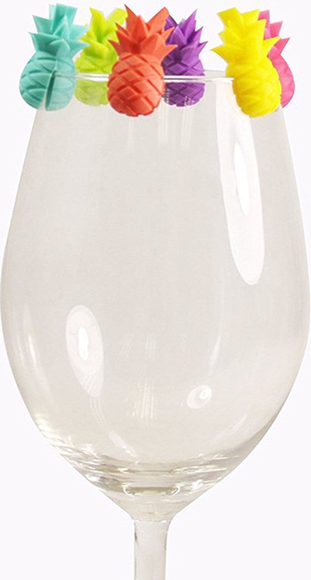 Je ontvangt zes glasmarkers in verschillende kleuren, zodat iedereen een eigen herkenbaar ananasje heeft. Perfect om verwarring te voorkomen wanneer de tafel vol staat met drankjes. -