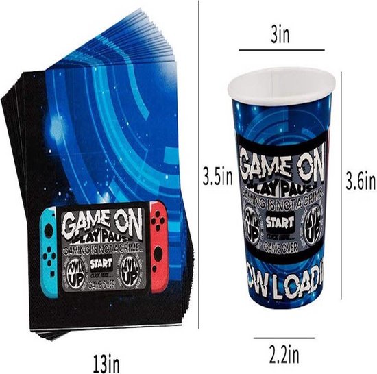 Maak je feest compleet met deze stoere "Game On"-thema set, perfect voor gamers en liefhebbers!