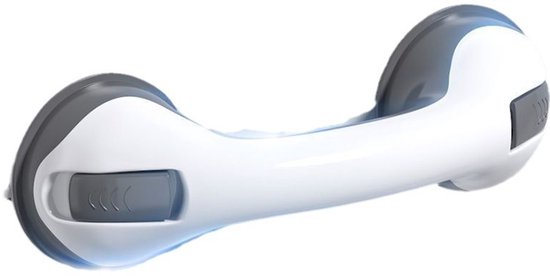 Set van 2 verplaatsbare veiligheidsgrepen met zuignappen voor extra houvast bij toilet, douche en bad. Elke greep is circa 30 cm lang, gemaakt van kunststof met rubberen zuignap en eenvoudig te bevestigen zonder gereedschap.