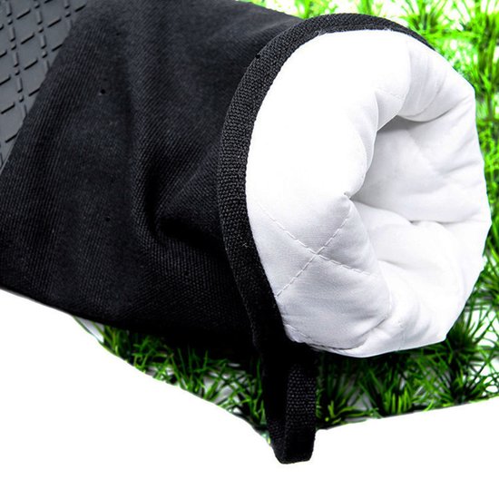 GEMAKKELIJK TE GEBRUIKEN EN SCHOON: Wassen met de hand of in de vaatwasser. Voedsel, vet, olie, grillresten, marinades, olie en bbq-saus kunnen binnen enkele seconden gemakkelijk worden afgewassen! Door het grote ophanggat zijn de handschoenen gemakkelijk op te bergen en te drogen.