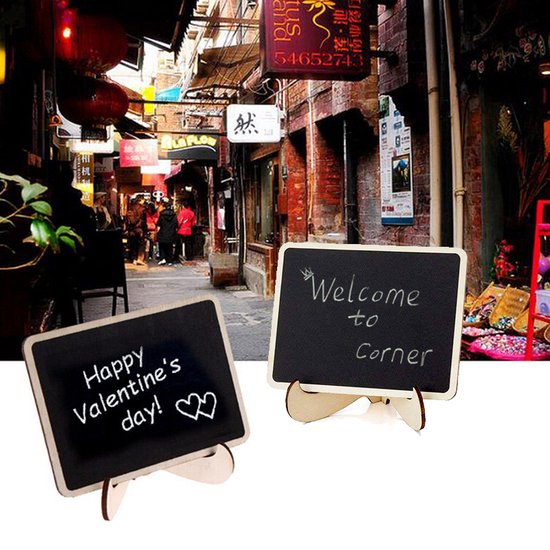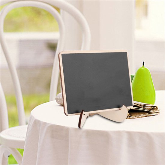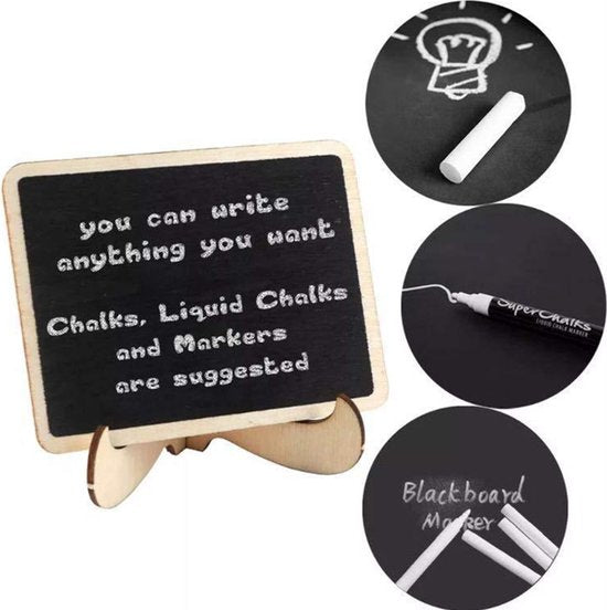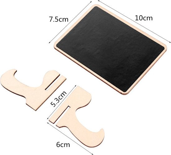 Voeg een vleugje charme en veelzijdigheid toe aan je huis, kantoor of evenementen met deze Mini Tafel Krijtborden. Met afmetingen van 10x7.5 centimeter bieden ze de perfecte ruimte voor notities, boodschappenlijstjes, tafelnummers, menu-items, en nog veel meer.