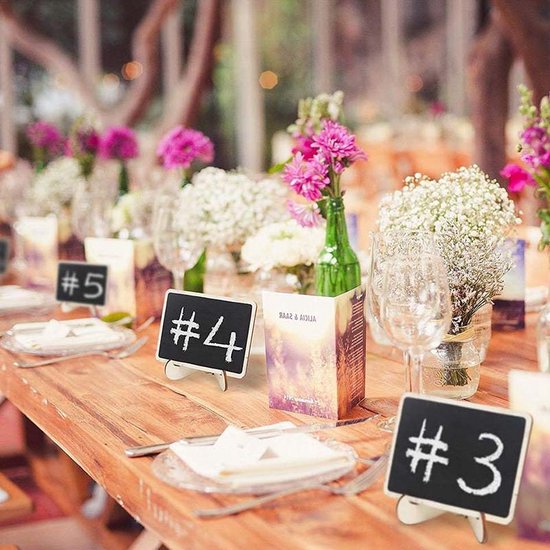 Veelzijdig Gebruik: Of je nu je tafelsetting wilt verbeteren, je huis wilt decoreren, of een speciaal evenement plant, deze krijtborden voegen een vleugje elegantie en functionaliteit toe.