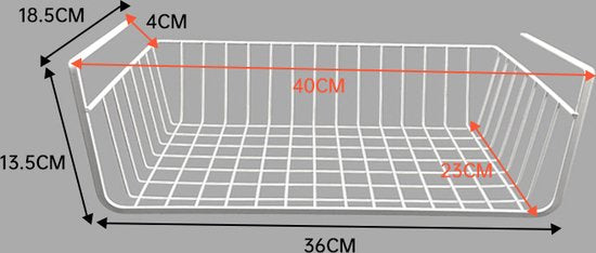 Met deze praktische en handige hangmand beschik je direct over flink wat extra opbergruimte onder bijvoorbeeld een kastplank. De mand is ontworpen om met zijn twee beugels stevig over een plank heen te hangen, waardoor je moeiteloos extra opslagruimte creëert. De hangmandjes van metaal zijn geschikt voor een plank met een maximale dikte van 3 cm.