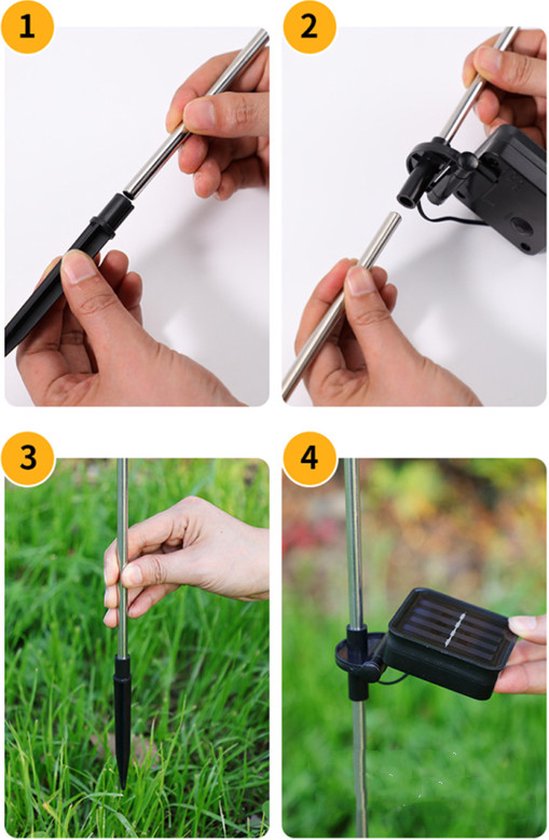 Het tuinlamp kan overal worden geïnstalleerd waar direct zonlicht komt. Je kunt het met een paal in de grond in je tuin steken.
