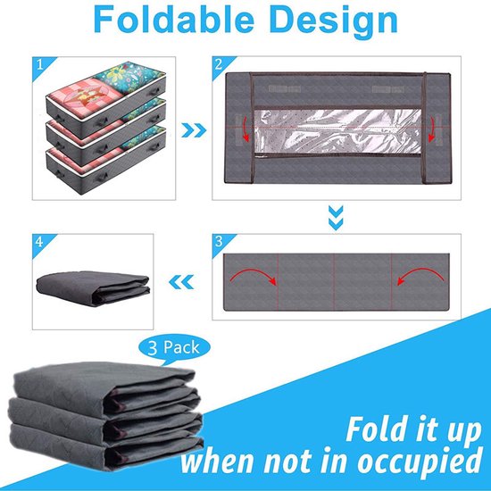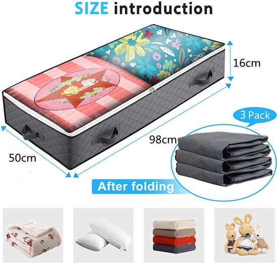 Maximaliseer uw opslagruimte thuis met deze set van drie stijlvolle, diepgrijze opbergboxen, speciaal ontworpen voor onder het bed. Of het nu gaat om het opbergen van dikke dekbedden, seizoensgebonden kleding of andere huishoudelijke benodigdheden, deze boxen bieden een nette oplossing.