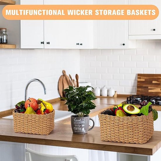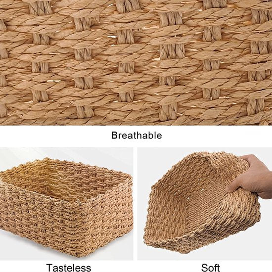 4 delige Natuurlijke Rieten Handgeweven Opbergdozen set-Rustieke Oplossing voor Thuisorganisatie-licht bruin