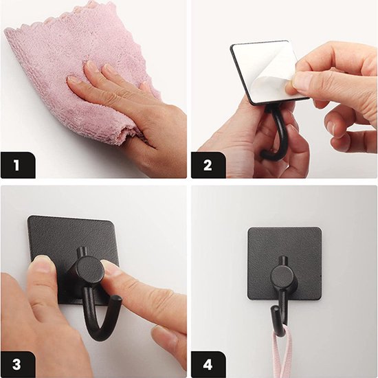 Unikorf 4x Zelfklevende Handdoekhaakjes, Zwart
