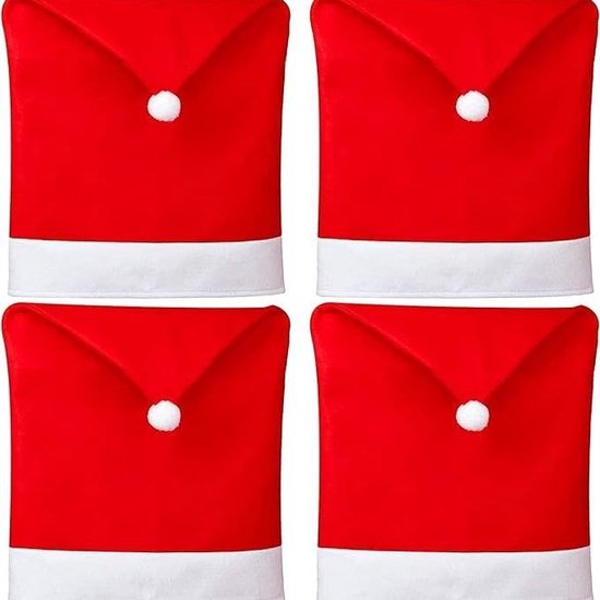 4stuks Kerst Stoelhoes in de Vorm van een Kerstmuts – Feestelijke Tafeldecoratie voor een Warme Kerstsfeer