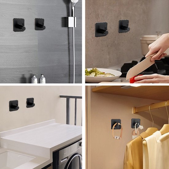 8 stuks Zelfklevende RVS haken - Unikorf, Zwart, 4,5x3cm