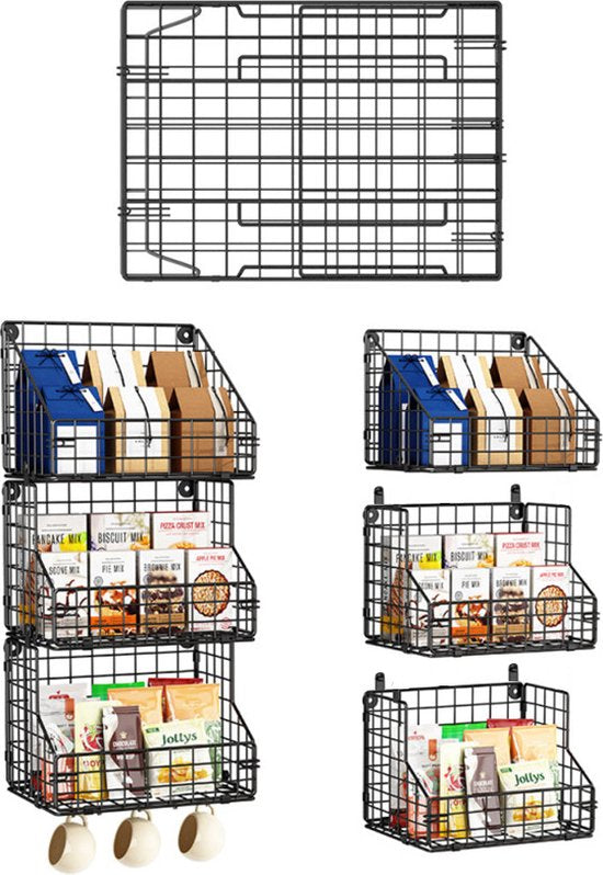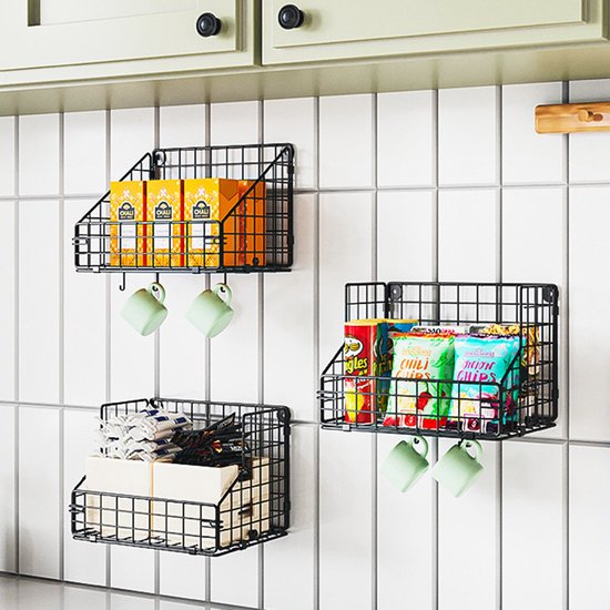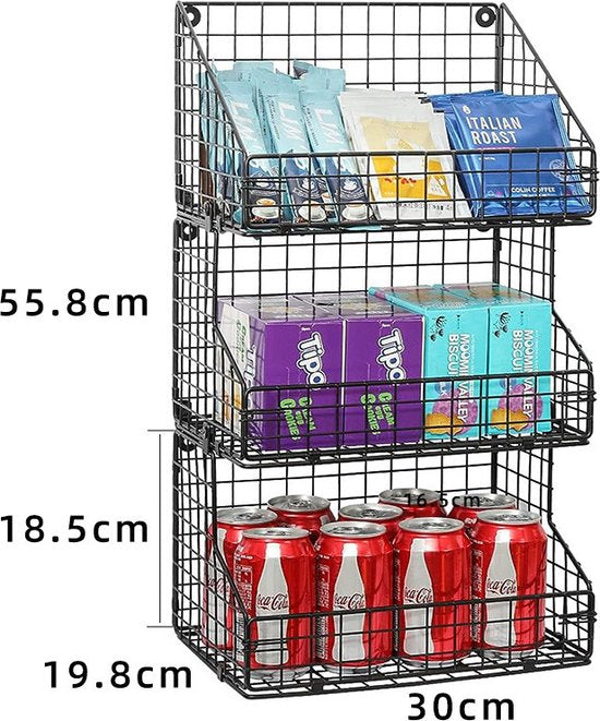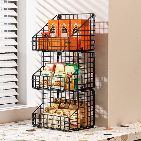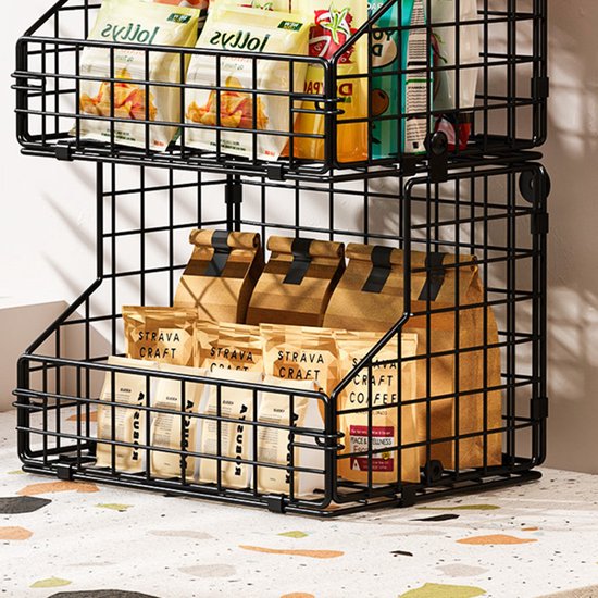 Opvouwbaar 3-lagen Keukenrek met Haken, Koolstofstaal, Zwart