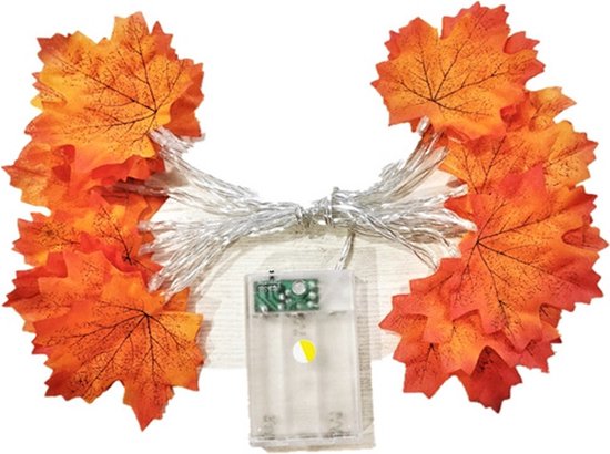Betoverende LED Esdoornbladlichtslinger-Geschikt voor Binnen en Buiten-werkt op batterij- 3meter 20 lichtjes -Oranje-rood