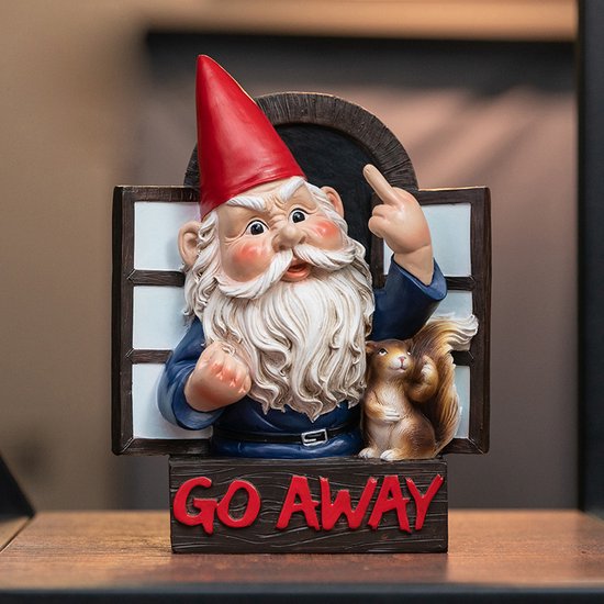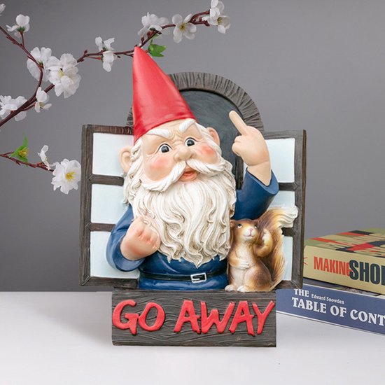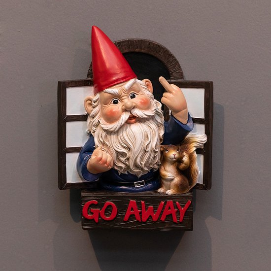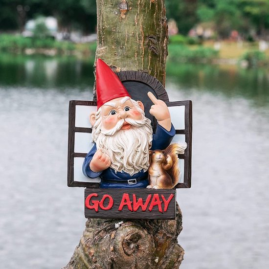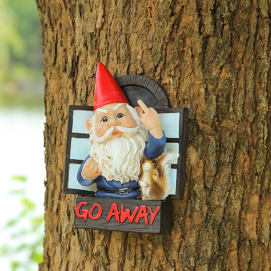Deurdecoratie voor de tuin met een boze tuinkabouter: Deze unieke decoratieve hanger voor bomen in de tuin is gemaakt van hoogwaardig synthetisch harsmateriaal. Met afmetingen van 15x6x20 cm en een gedetailleerd ontwerp, voegt deze hanger een eigenzinnige en ondeugende sfeer toe aan elke tuin.