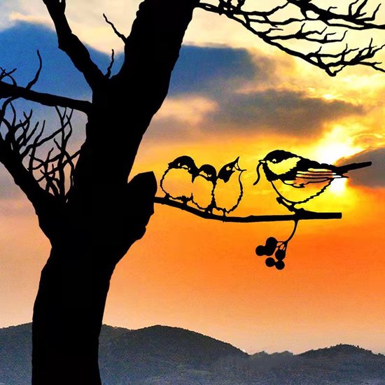 Metalen Vogelfamilie Boomhanger - Duurzame Tuindecoratie