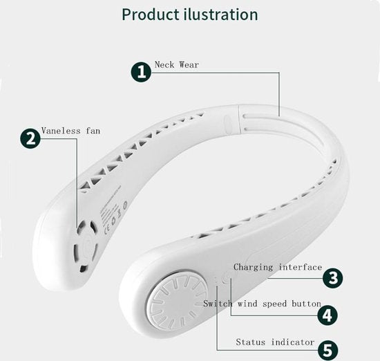 1.Laat uw handen los: het product heeft een handsfree ventilatorontwerp en heeft een nekriem waarmee u uw handen overal kunt vrijmaken. De 48 omliggende luchtuitlaten kunnen zorgen voor een sterkere luchtstroom, wat handig en gemakkelijk te gebruiken is.
