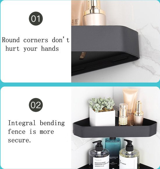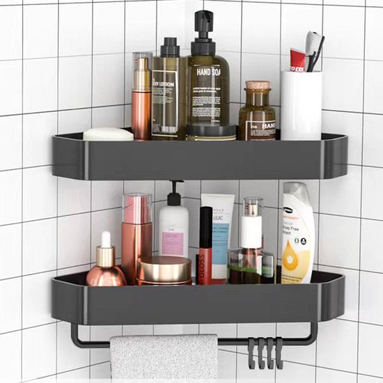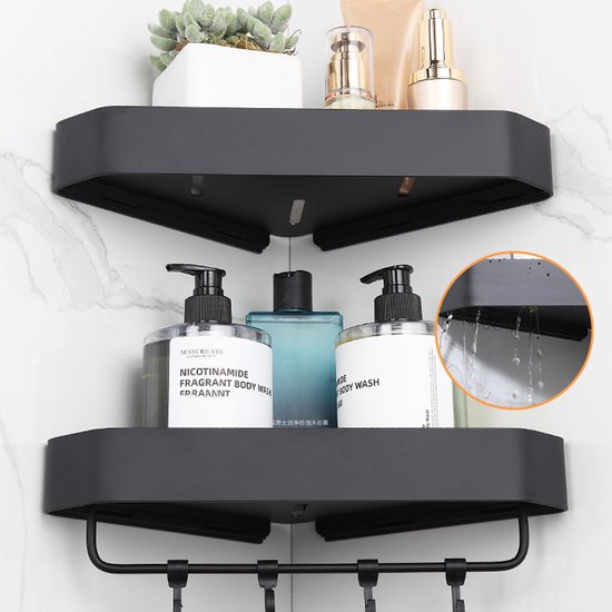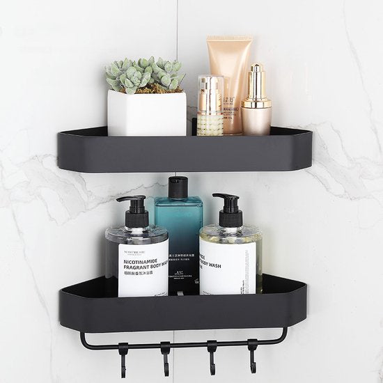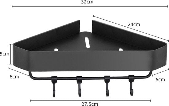Driehoekig Badkamerrek 2 Lagen met 4 Haakjes - Zwart