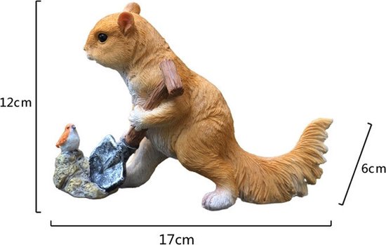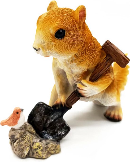 - Uniek cadeau voor buitenbeeldhouwwerk: Voeg een mooie decoratie toe aan je tuin, binnenplaats, oprit of vensterbank. Deze eekhoorntuindecoratie is een ideaal cadeau voor familie en vrienden. Perfect voor gelegenheden zoals Pasen, Vrouwendag, Kerstmis, verjaardagen, jubilea en andere speciale momenten. De creatieve dierenfiguur is een eekhoorn met een schep, gemaakt van natuurlijke hars, en heeft afmetingen van 17x6x12 cm.