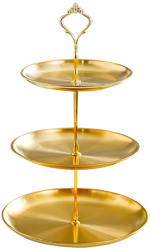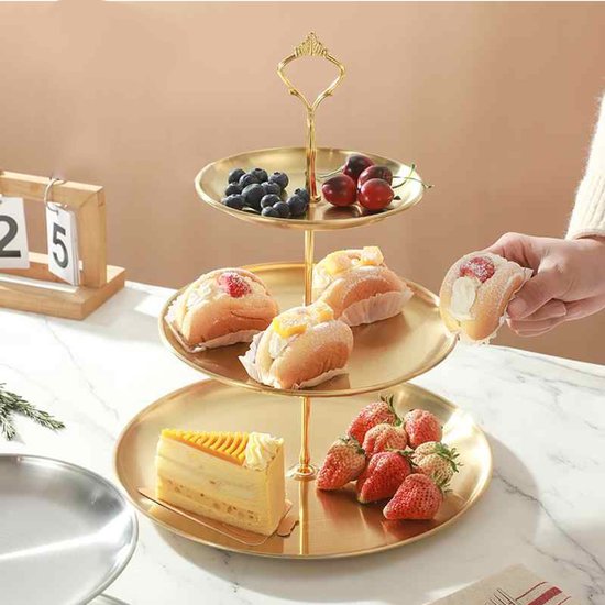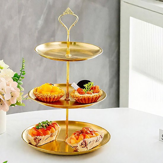- Goudkleurige RVS-afwerking voor een stijlvolle presentatie bij high tea, borrel of feestelijke tafelopstelling.