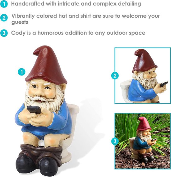 Dit harsen Gnome-toilet smartphone-ornament is de perfecte aanvulling op uw tuin en een leuk decoratief item voor binnen en een geweldig cadeau-idee.