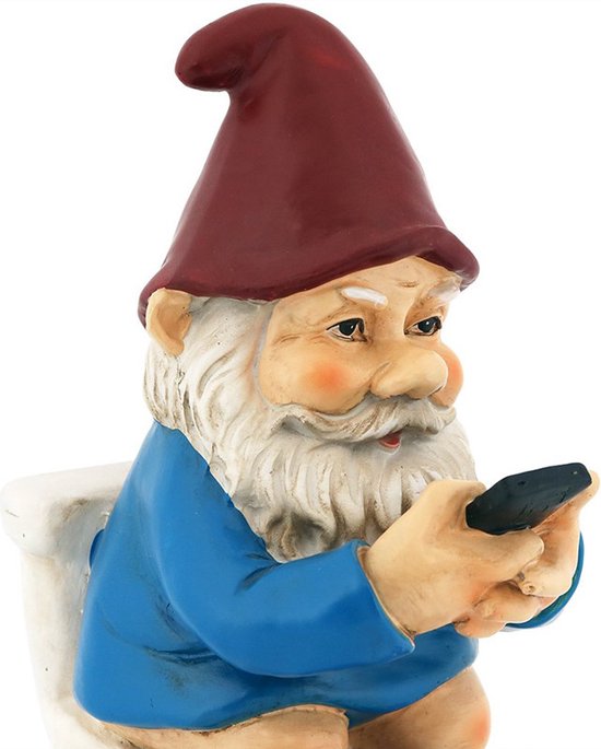 Creatief Ontwerp: De kabouter is ontworpen om op het toilet te zitten en op zijn smartphone te spelen, wat een grappige scène oplevert die zeker de aandacht zal trekken en voor gelach zal zorgen.