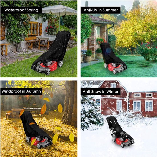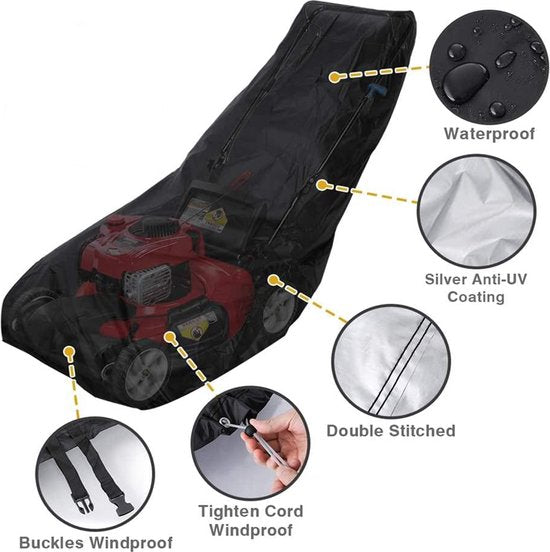 Bedek je grasmaaier met deze grasmaaierhoes. Hij is gemaakt van polyester vezel die niet zal krimpen en uitrekken. Het materiaal is waterbestendig, waardoor het ideaal is voor gebruik buiten. Deze hoes beschermt de grasmaaier tegen zonneschade, regen en stof.