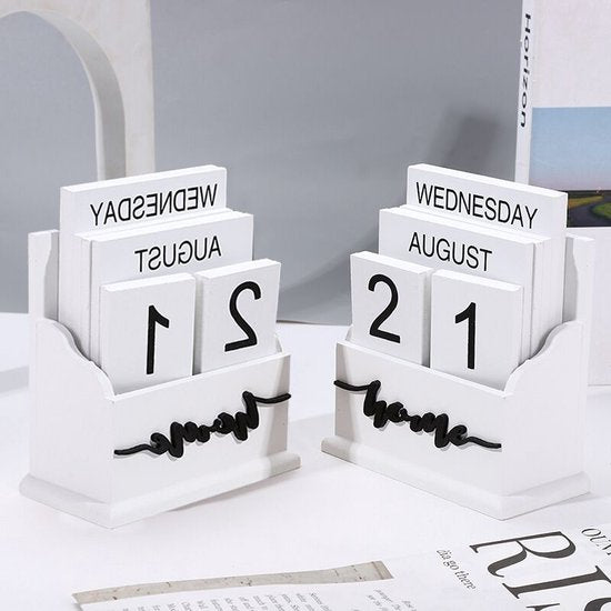 - 1x Houten eeuwigdurende kalender met “Home” opdruk