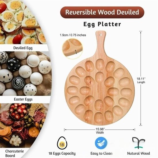 Houten Serveerplank & Eierhouder Rond – 24 Eieren – Multifunctioneel