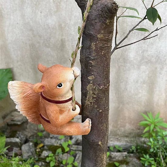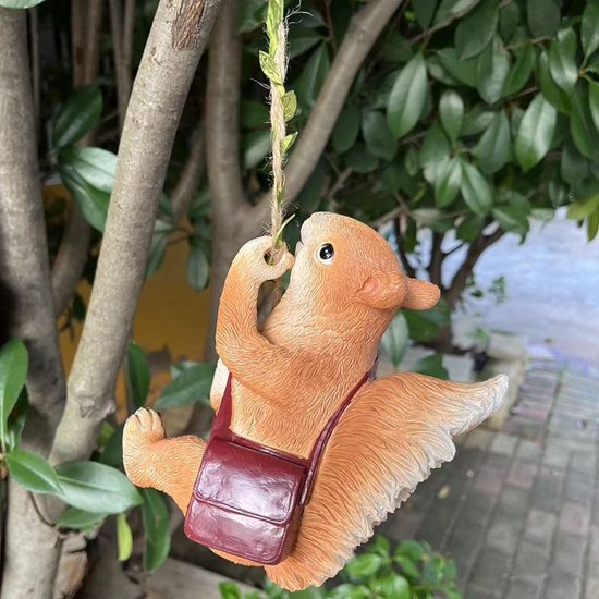 Klimmende Eekhoorn met Schoudertas Decoratieve Hanger-Weerbestendig, Gedetailleerd Handwerk 11*14*17cm