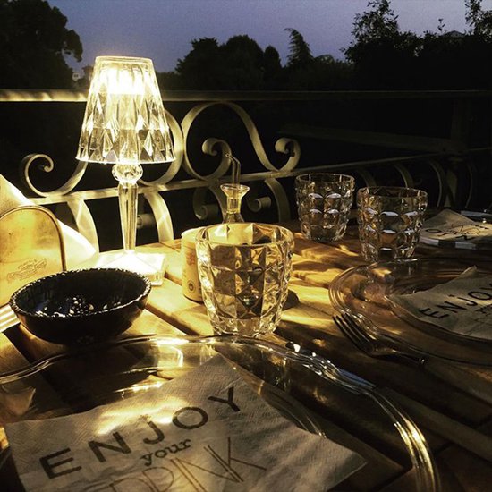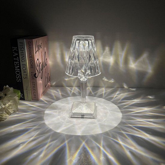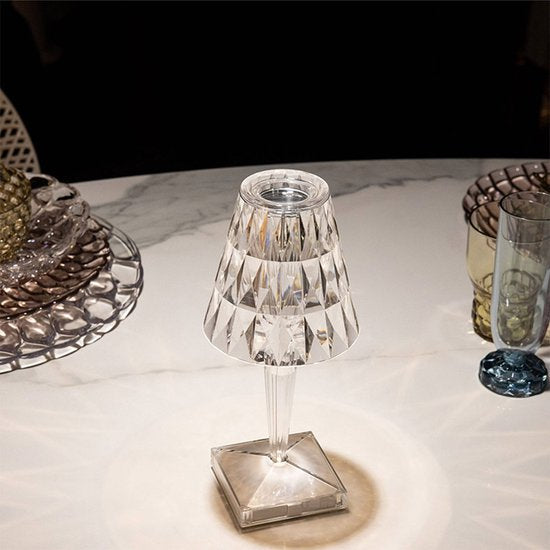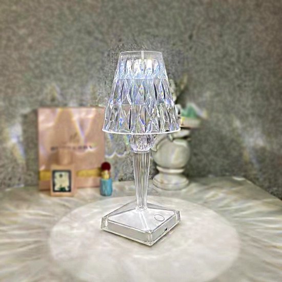 Deze led-kristallen tafellamp is gemaakt van acrylglas, dat niet alleen duurzaam is, maar ook de lichtdoorlatendheid verbetert. Het schittert als een diamant.