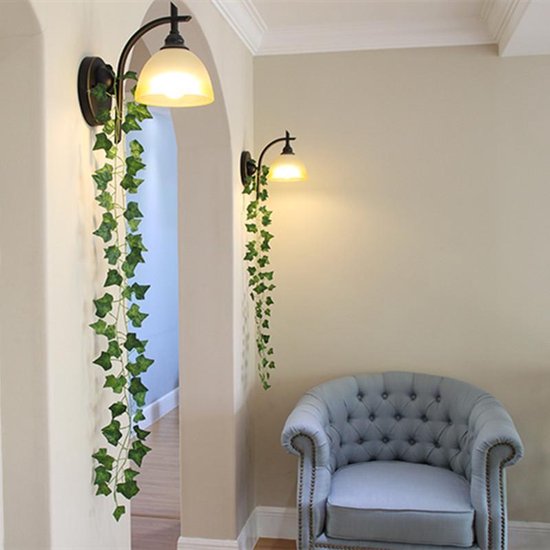 Prachtige verschijning. Deze wijnstok met verlichting is bedekt met volle en levensechte eucalyptusbladeren, het is een perfect levendig kunstslinger licht decor voor uw huis.