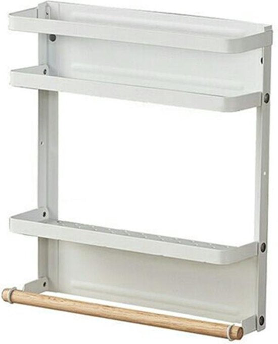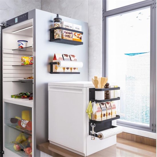 - Magnetisch hangrek: zonder boren en eenvoudig te installeren. Er zit een twee ingebouwde sterke magneten op de achterkant van het opbergrek. Zonder gereedschap kun je het eenvoudig op de koelkast hangen. Geen schade aan de koelkast; het pakket bevat de benodigde schroeven voor wandmontage als dat gewenst is.