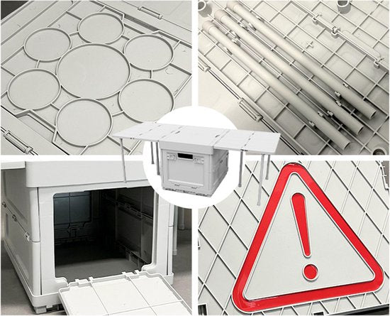 Compact en draagbaar: Het opvouwbare ontwerp maakt het gemakkelijk om de box op te bergen en mee te nemen, waardoor het ideaal is voor reizen en opbergen in kleinere ruimtes.