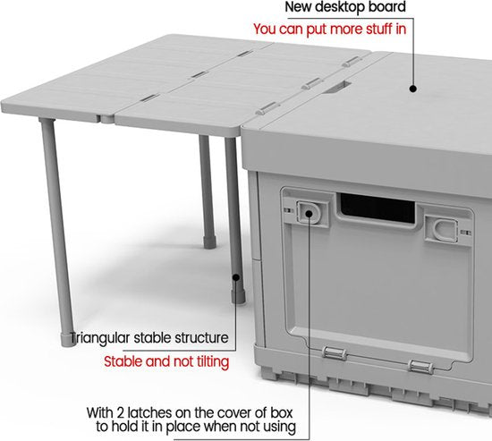 Veelzijdige opvouwbare box: Speciaal ontworpen voor het opbergen van kleding, maar ook te gebruiken als handige tafel tijdens kamperen of buitenactiviteiten.