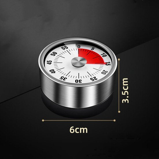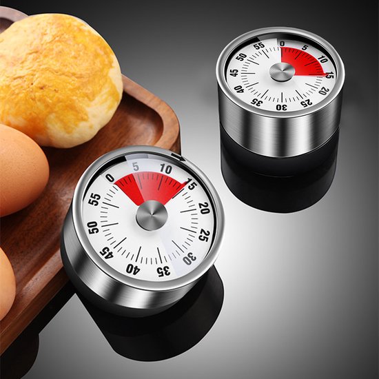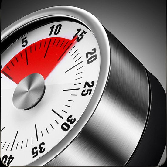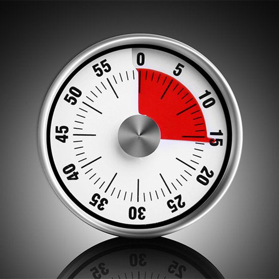 Onze kookwekker blinkt uit in zowel functionaliteit als stijl. Hij is ideaal voor bakken en koken en kan worden ingesteld tot maximaal 59 minuten. Het instellen van de tijd is simpel: draai gewoon aan de rand om de gewenste tijd te kiezen. Een duidelijk zichtbaar rood vlak toont de resterende tijd, zodat je in één oogopslag kunt zien hoe lang je nog hebt.