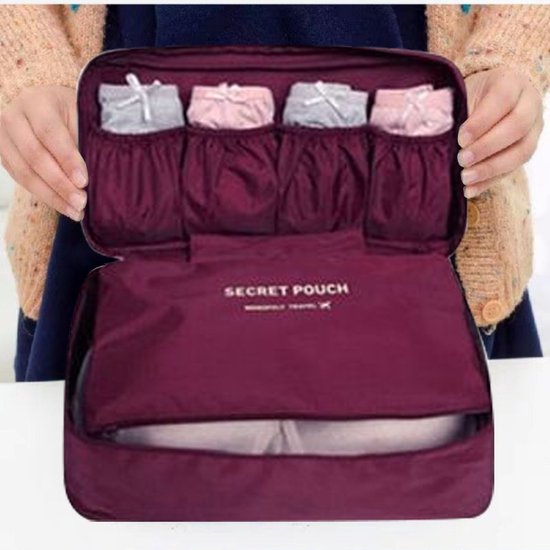 - Drievoudig ontwerp met hoofdvak en extra ritsvakken; hoofdcompartiment biedt ruimte voor maximaal 5 bh's of vergelijkbare items, zodat buste en ondergoed netjes blijven.