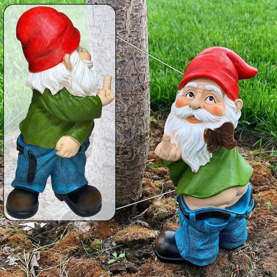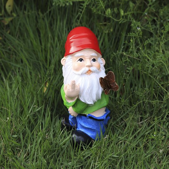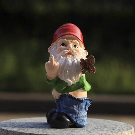 Ondeugende Tuinkabouter met Opgeheven Middelvinger