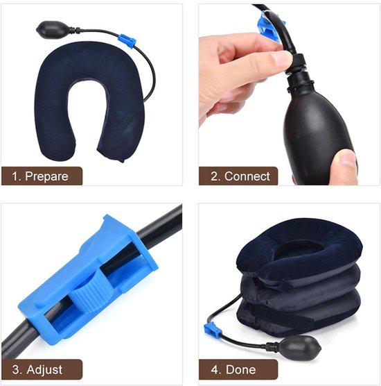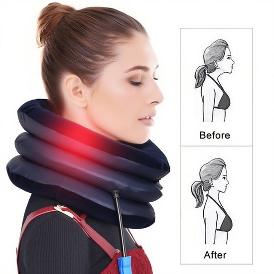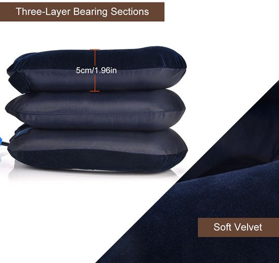 Opblaasbaar ergonomisch nekkussen - neksteun, fleece, blauw