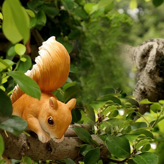 - Gesimuleerd Eekhoornontwerp: Dit product imiteert met ongekende precisie het uiterlijk van een echte eekhoorn, dankzij gedetailleerd houtsnijwerk en levendige kleuren die zorgen voor een adembenemend realistische uitstraling.