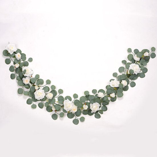 prachtige kunstwijnstok-decoratie voor bruiloften, thuisgebruik en tafeldecoraties-1.85meter lang met 21 pure witte rozen-wit