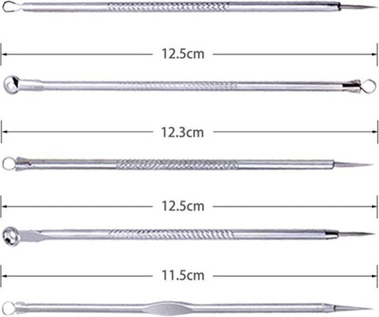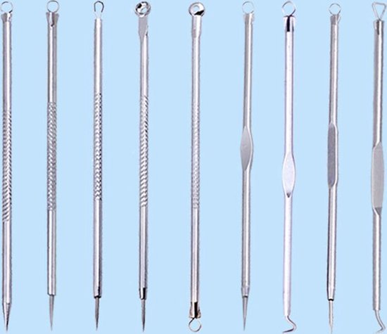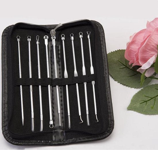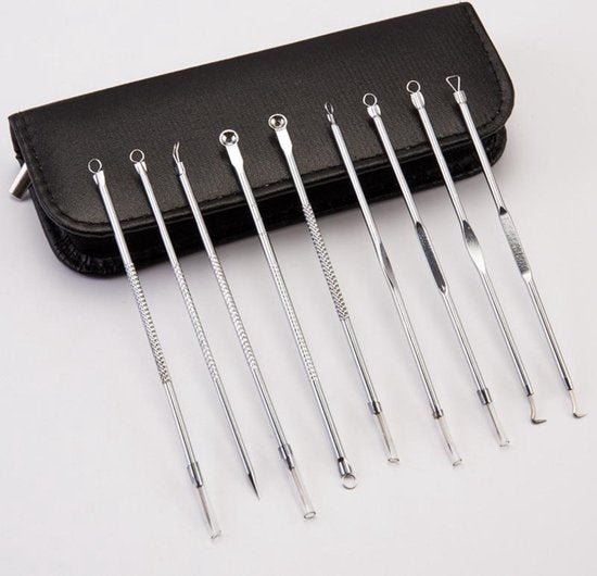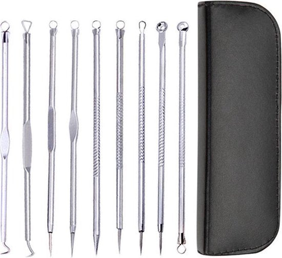 Ontdoe je van comedonen, mee-eters, acne en andere schoonheidsfoutjes met deze handige comedonenverwijderingsset. De set bevat 9 praktische tools voor gemakkelijke verwijdering van elk type huidprobleem.