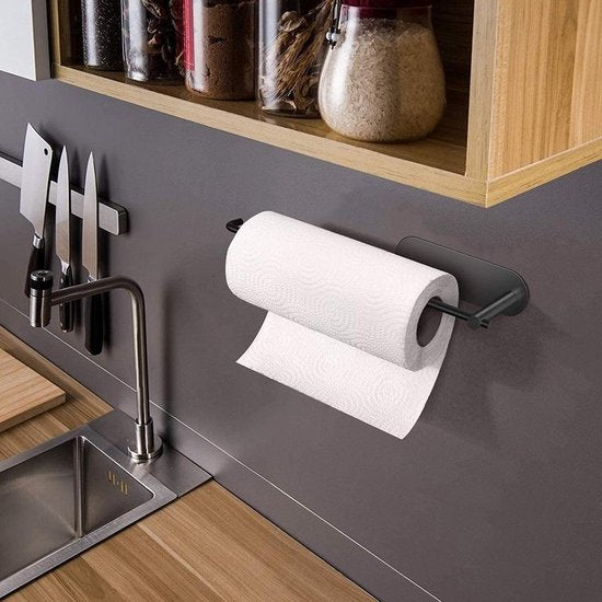 Roestvrijstalen Zelfklevende Keukenrolhouder - Zwart