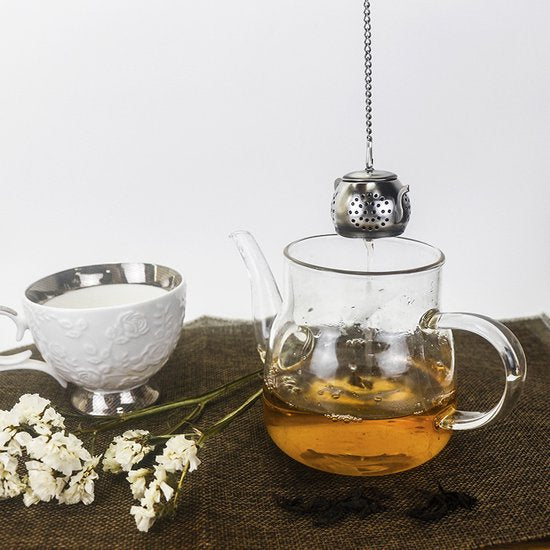 Maak jouw theemoment bijzonder met dit thee-ei van hoogwaardig RVS. Dankzij het fijnmazige ontwerp blijven theeblaadjes netjes in het zeefje en geniet je altijd van een heldere, smaakvolle thee. De handige ketting maakt het eenvoudig om het thee-ei uit je kopje of theepot te halen zonder te morsen.