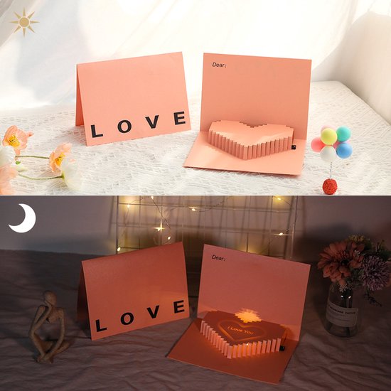 Betover je geliefde met een uitzonderlijk geschenk dat zowel je gevoelens uitdrukt als een blijvende herinnering creëert. Onze 3D papieren sculptuur wenskaart combineert innovatieve ontwerpdetails met persoonlijke touches, waardoor het de perfecte keuze is voor Valentijnsdag, jubilea, of gewoon om te zeggen "Ik hou van jou".