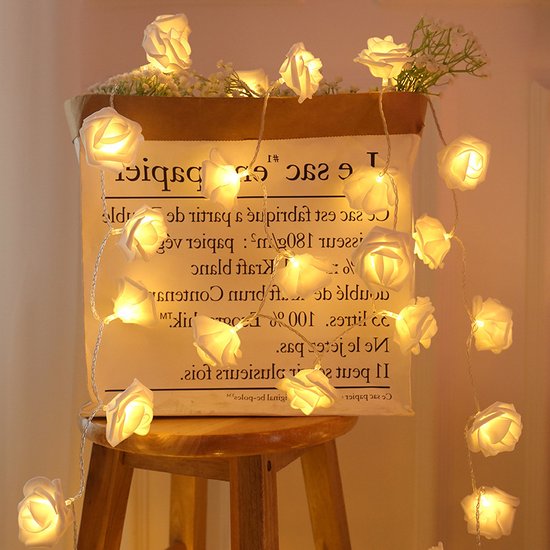 Prachtig ontwerp: Deze reeks LED-lichtparels schittert als sterren en is ingebed in de vorm van rozenbloemen, als een fonkelend sterrenbeeld in de nachtelijke hemel. Elke LED-lichtparel glimlacht als het ware en straalt warm wit licht uit, alsof het een romantisch verhaal vertelt.