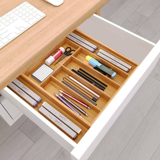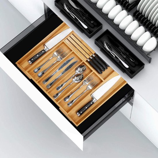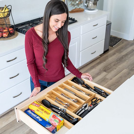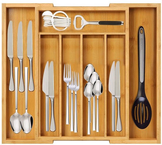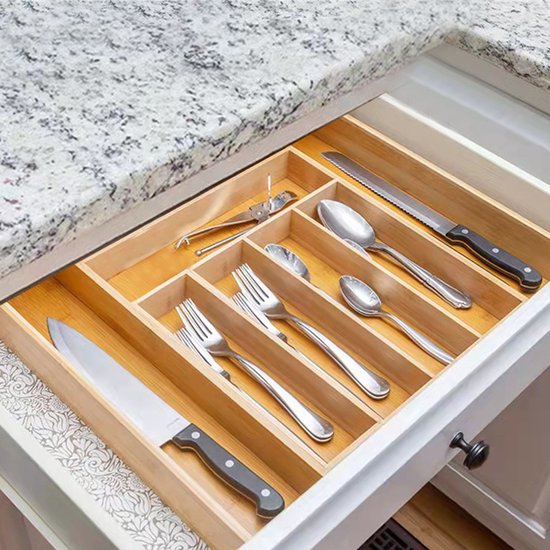 Ruimtebesparende Bamboe Bestekbak - Uitschuifbaar van 5 naar 7 Vakken voor een Georganiseerde Keukenlade - Stijlvolle Keukenorganizer48*37,5*5cm