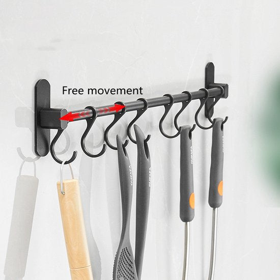Ruimtebesparende Keukengerei Wandbeugel-keukengereihouder met 8haakjes-Aluminium Keukenrail -49.5CM-zwart