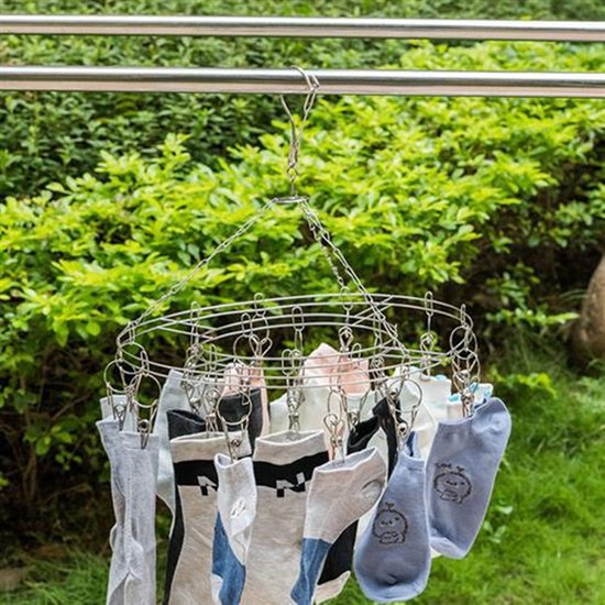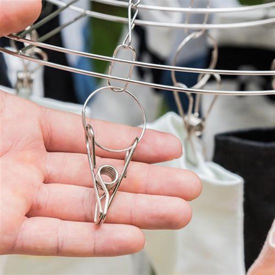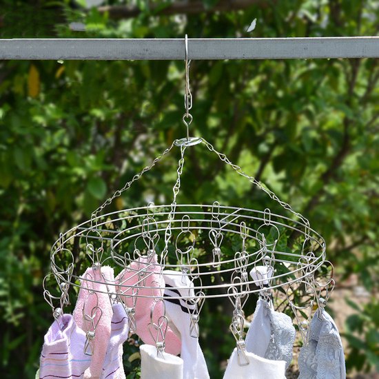 Wilt u kleine kledingstukken drogen zonder gebruik te maken van de droger? Met deze handige droogrek kunt u eenvoudig en efficiënt ondergoed, sokken en andere kleine kledingstukken laten drogen. De rek is uitgerust met 20 stevige roestvrijstalen knijpers, waardoor u uw kleding buiten kunt laten drogen zonder zorgen te maken.