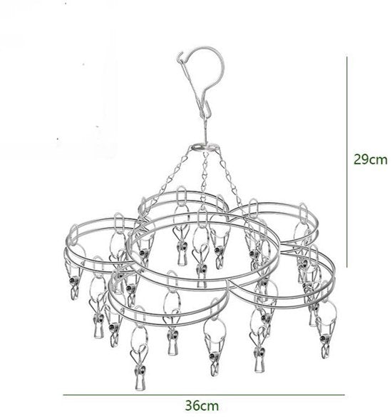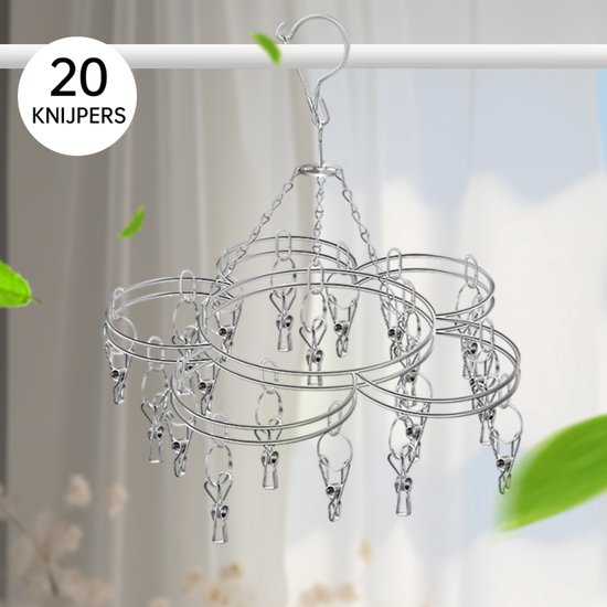 Wilt u kleine kledingstukken drogen zonder gebruik te maken van de droger? Met deze handige droogrek kunt u eenvoudig en efficiënt ondergoed, sokken en andere kleine kledingstukken laten drogen. De rek is uitgerust met 20 stevige roestvrijstalen knijpers, waardoor u uw kleding buiten kunt laten drogen zonder zorgen te maken.
