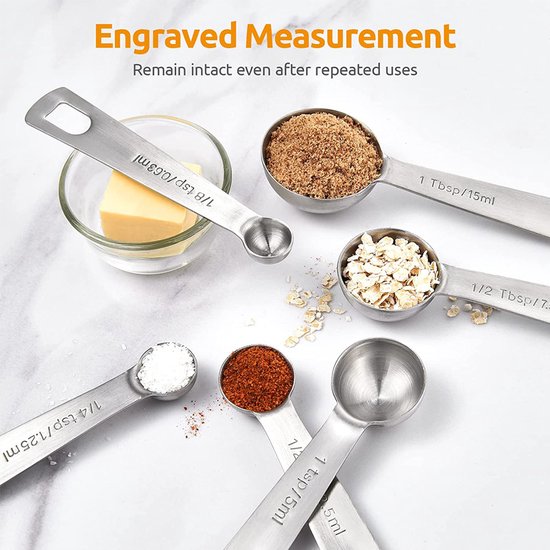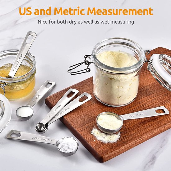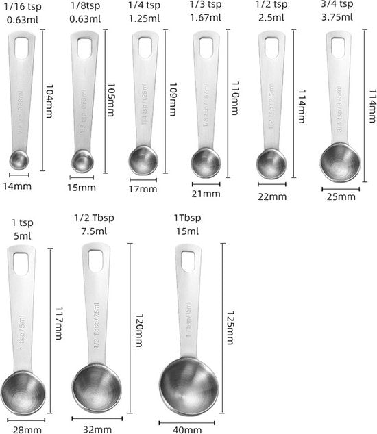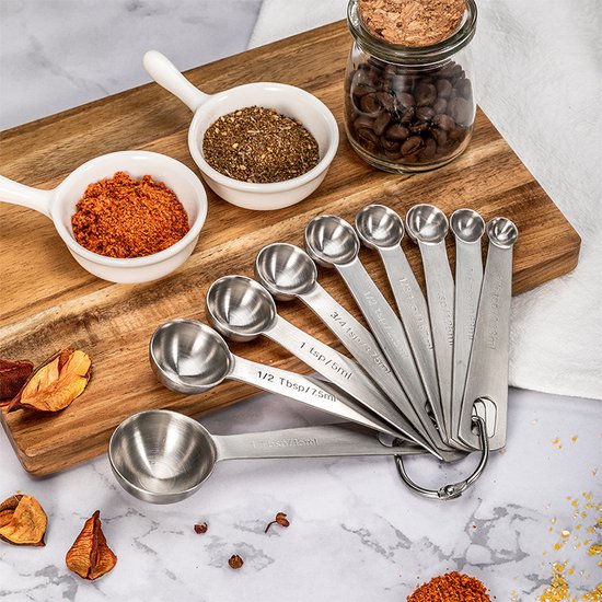 - Set van 9 roestvrijstalen maatlepels van hoge kwaliteit, gemaakt van 304 roestvrij staal