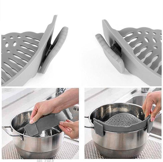 Maak het afgieten van pasta, groenten of aardappelen veiliger en eenvoudiger met dit siliconen afdruiprek. Dankzij het flexibele materiaal en de handige clips past dit rek op vrijwel elke pan. Ideaal voor dagelijks gebruik in iedere keuken!