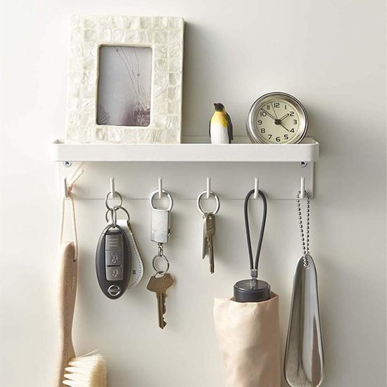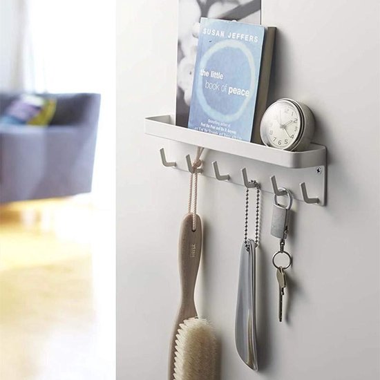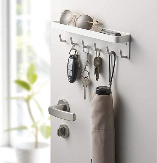 Sleutelrekje met magneet – 6 haakjes – RVS – Wit – 24,5 cm